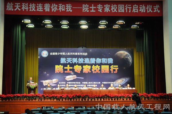 “航天连着你和我 ——院士专家校园行”活动以“天宫一号/神舟八号交会对接任务”圆满成功和中国航天科技发展55周年为契机,组织院士、专家走进全国部分大、中、小学校园,通过宣讲航天科技知识,展示我国航天科技成就,必将激发广大青少年对航天科技的兴趣,为国家培养更多的科技创新人才。(刘爽 宫继良)