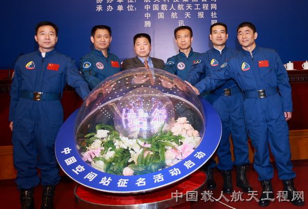 【中国载人航天工程网站 4月25日】“我宣布,中国载人航天工程标识及中国载人空间站名称标识征集活动正式启动!”2011年4月25日上午十点,“腾讯杯中国载人空间站名称征集活动”发布暨启动仪式在人民大会堂隆重举行,中国载人航天工程总设计师周建平宣布征集活动正式开始,中国六名航天员共同启动水晶球。