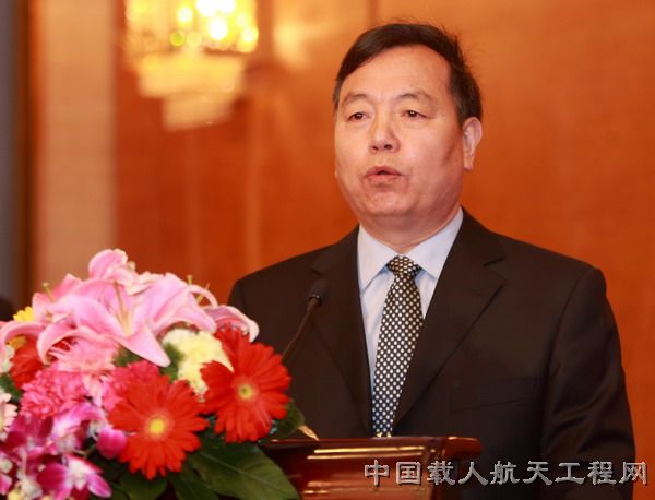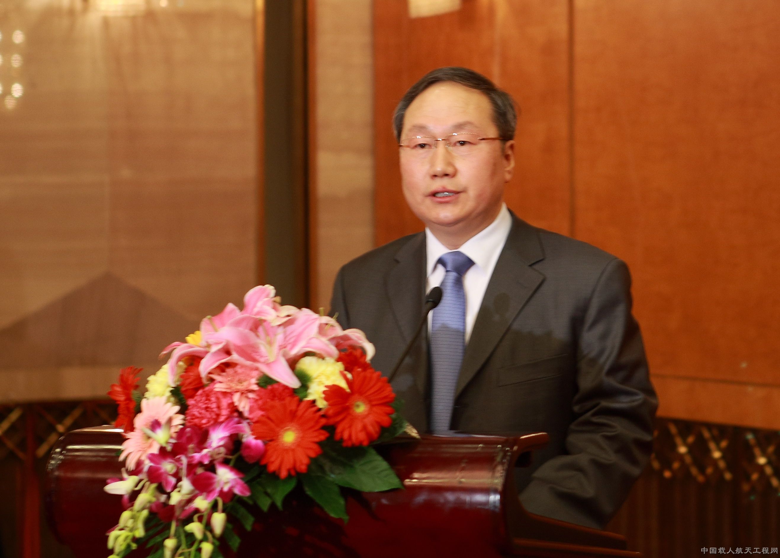 图6:中国载人航天工程办公室副主任杨利伟在发布会上致辞 (武向荣 摄)