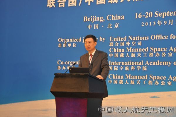 图:中国载人航天工程办公室主任王兆耀作主旨发言(刘爽 摄)