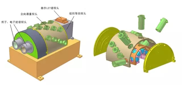 带电粒子辐射探测器身上的十六个小柱子(探头)可以从16个方向全天候捕获天宫轨道上的高能带电粒子